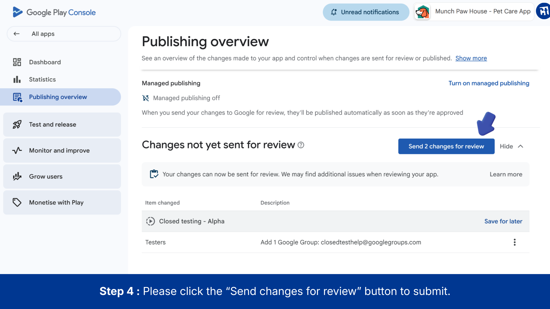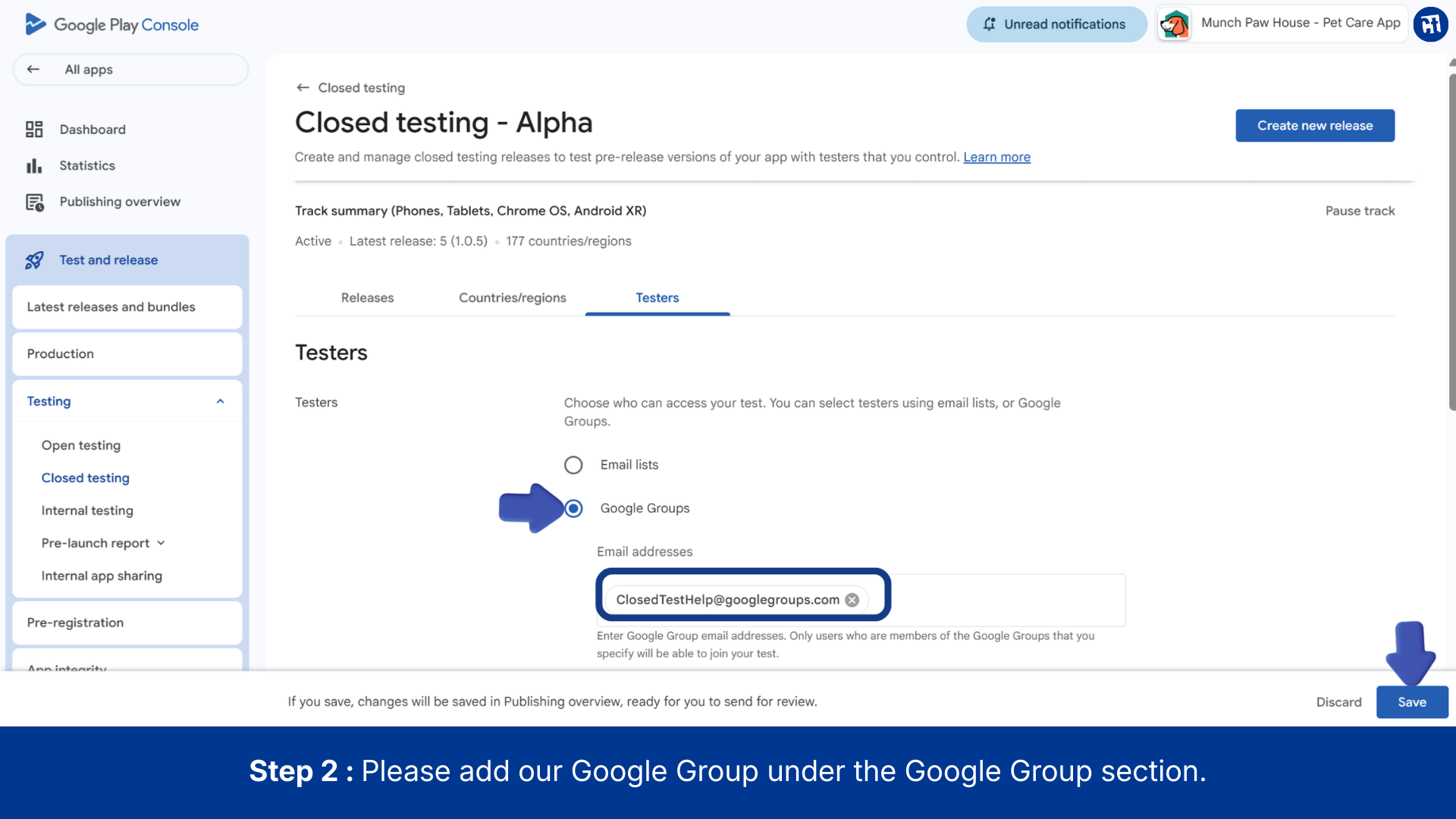 - Publish a closed testing release: This is the initial setup you completed.